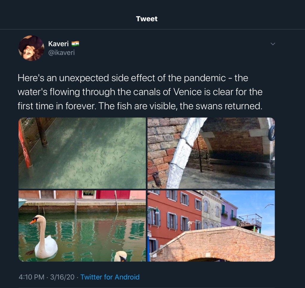 mother nature is a supreme genius and this is not happening TO us, it is happening FOR us. it is not a mystery that us humans have been savagely destroying the earth and all it’s beauty forever now, for what? we have ignored the warnings and we have been afraid to change because we know how drastic the change would have to be. well – if we won’t listen then she will force us to and that will never change until we do. as much as i don’t like to say it – we may getting the great humbling, the great reminder right now. regardless of social status, we all stand zero chance against mother nature and this could very well be her way of helping us collectively evolve and return closer to the natural order in which the sun will come out again.