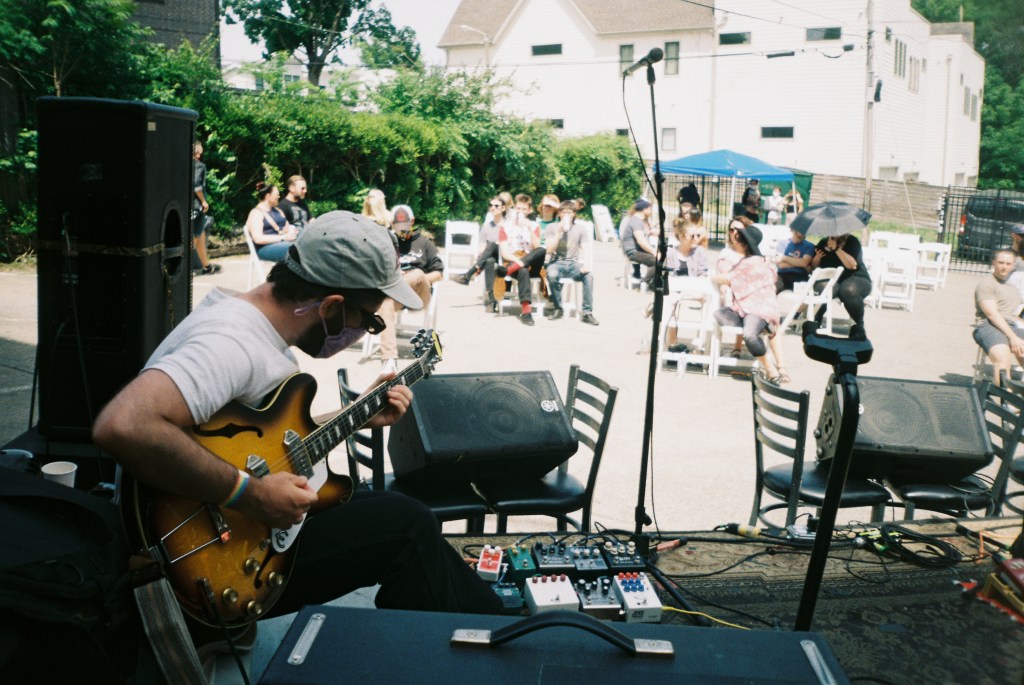 I knew that I wanted all the shows to be outside, small capacities, safe scenarios and that the entire band would need to be fully vaccinated and it would be two bands in one. We sought out forward thinking, similarly minded venues and promoters who were starting to adapt in ways that allowed shows to happen. The Sultan Room in Brooklyn just opened their rooftop and we ended up doing 4 shows over 2 nights there, my long-time friend Marley just took over booking the only currently functioning venue in Philly – Sunflower Philly, Ace of Cups in Columbus, OH started doing outdoor shows in their backyard, HI-FI in Indianapolis built an entire new world in their parking lot resembling a proper festival stage/outdoor venue and lastly The Basement in Nashville started doing parking lot shows (you can relive that show here via the nashville scene)