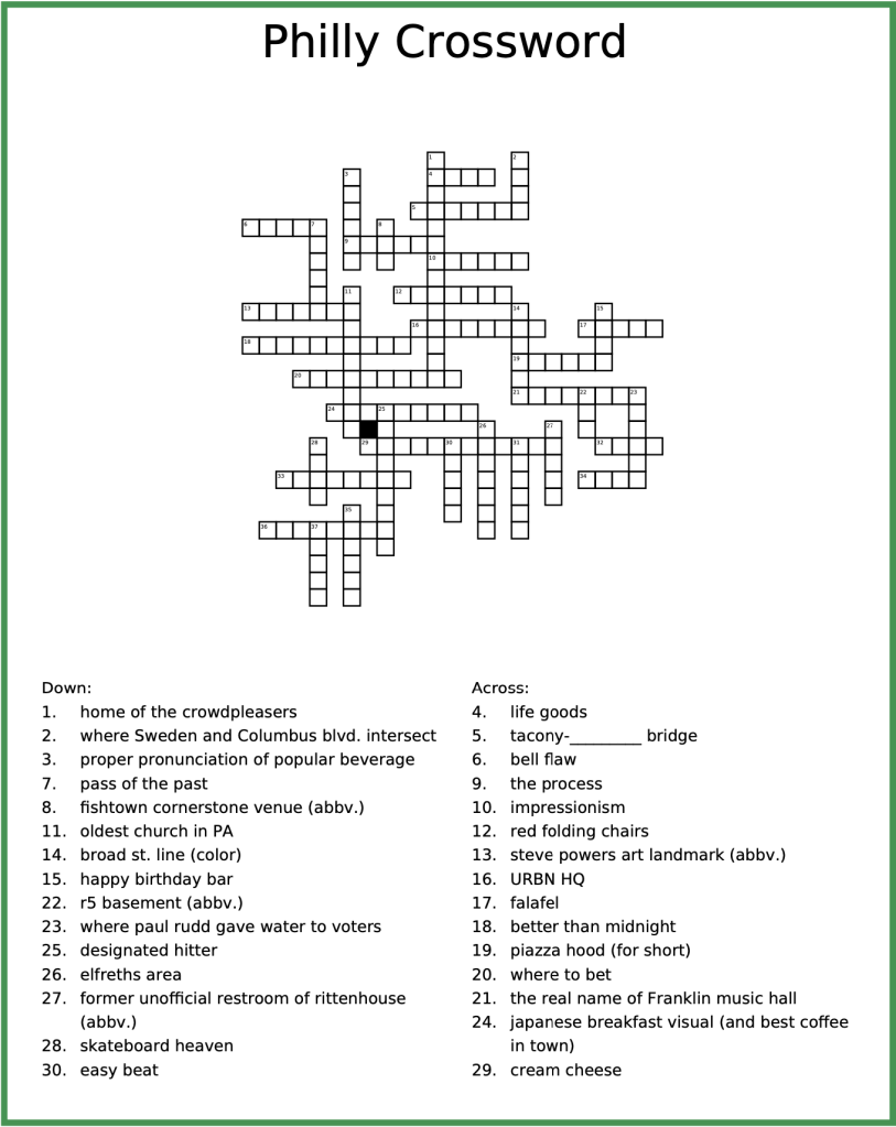 The debut of our sporadic crossword series. Today’s theme we keep close to home : Philadelphia. IYKYK. Apologies to anyone not from here as this is going to be near impossible for you. (But could be a good way to reconnect with Philly friends you may have).