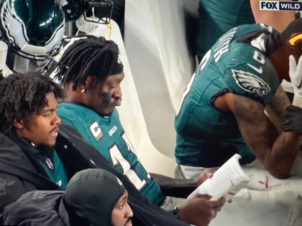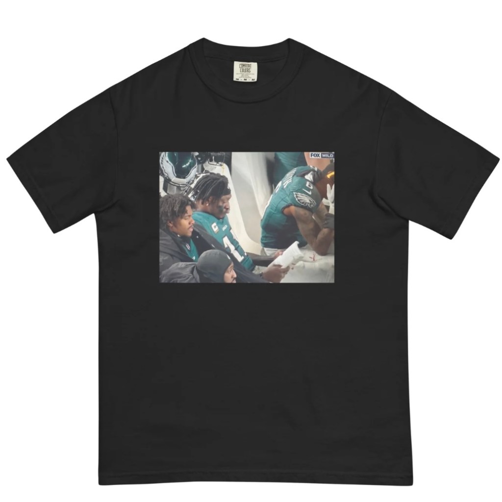 our MVP. reading “inner excellence” by jim murphy between plays in a playoff game. on a shirt available now in shop.