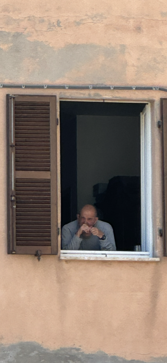 this guy has been sitting in this window for years. this window is located in the main square of a small village in the Marche region of italy called Sirolo. i stop there once a year usually around the same time and he’s been there every time.